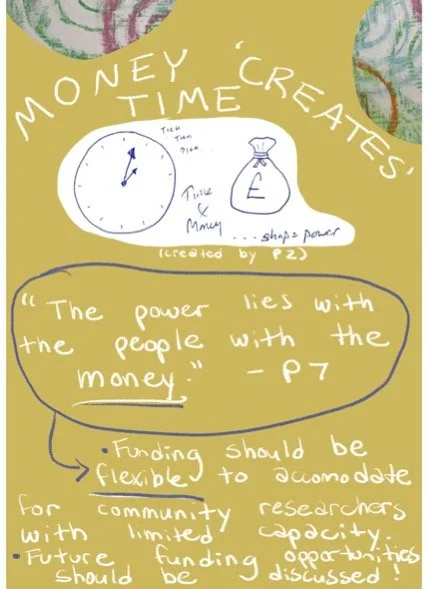Participants were also encouraged to contribute to a zine about this project and power in community-led research overall. Participant contributions included drawings, sketches and photography. These pieces were arranged into the final zine (available below) which was intended to be a creative and accessible form of dissemination.